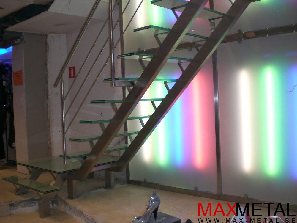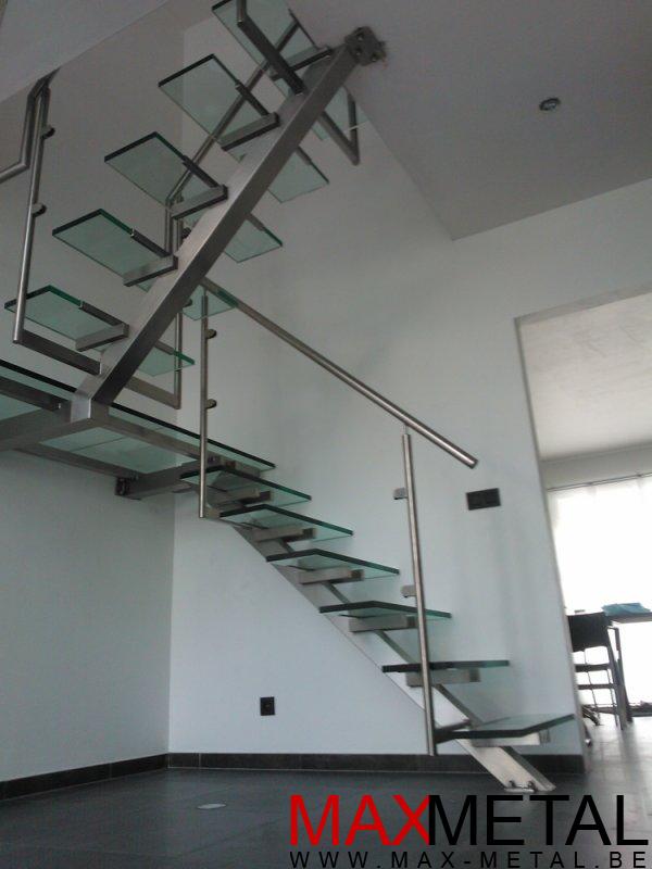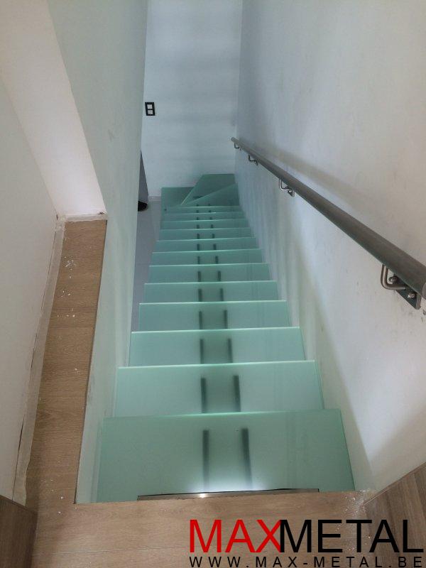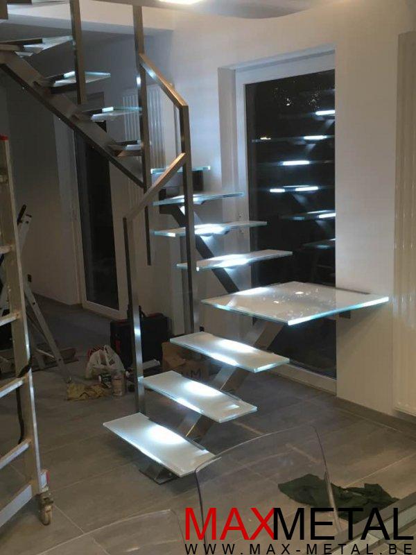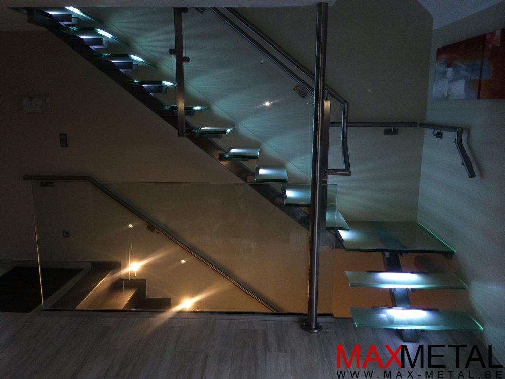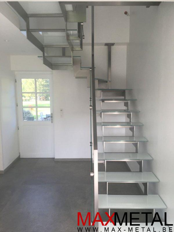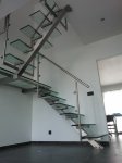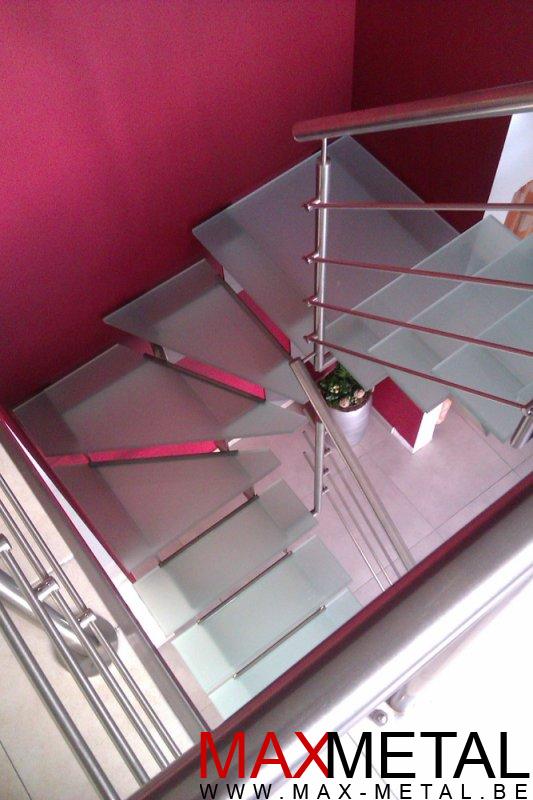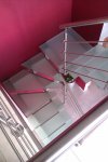 Droit, cintré, avec palier, marches balancées, en verre, en bois, en